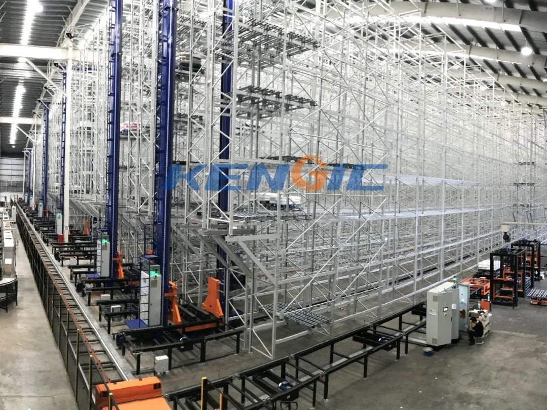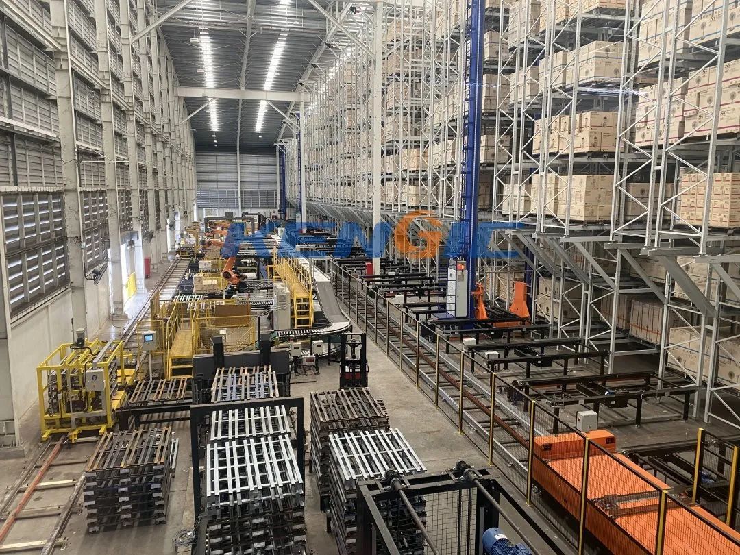 該項目從2021年10月實施,2022年3月正式交付,規劃設計了超過15000個貨位,定制部署了7套雙深堆垛機(直軌/彎軌)倉儲系統、三工位RGV搬運系統、AGV搬運系統、頂升移栽系統、托盤輸送系統、視覺在線揀選系統、機械臂及拆碼盤機等,實現成品家電的出入庫無人化、存儲集約化、庫區面積利用最大化及設備系統可視化等需求。