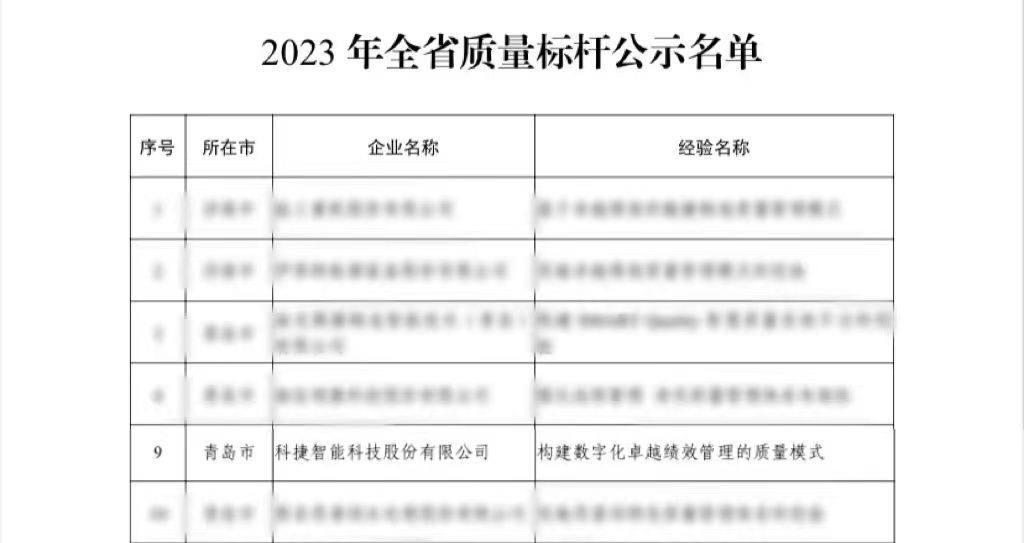 近日,山東省工業和信息化廳公示了2023年全省質量標桿名單,科捷智能榜上有名,榮獲“構建數字化卓越績效管理的質量模式”經驗標桿企業認定。繼2022年科捷智能獲得青島市質量標桿企業認定后,此次認定升級至全省質量標桿企業,是對科捷智能在質量管理模式上數字化構建的大力肯定和激勵。
