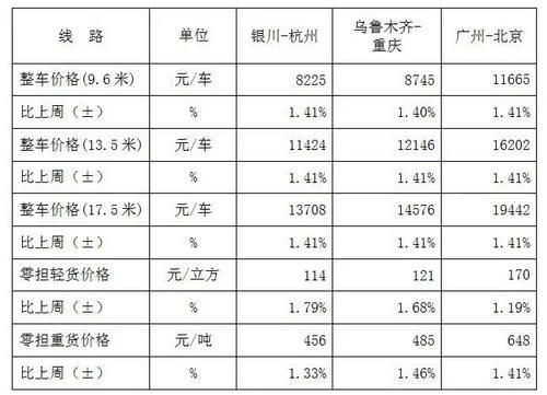 (本周部分線路平均價(jià)格及環(huán)比情況對(duì)比)